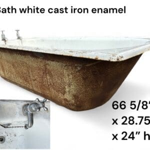 THB15121 bath white cast iron enamel rectangular – no side panels – capstan head chrome hot and cold taps x 1