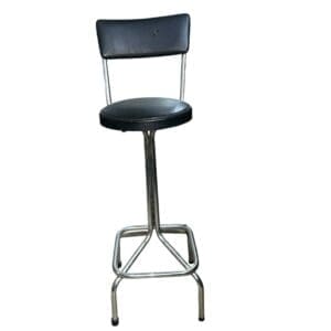 THB10232 tall stool metal legs cream padded vinyl seat and back foot rest surround