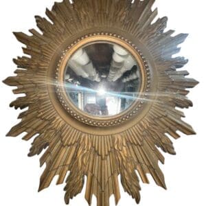 THB13786 wall mirror gilt wooden sunburst with circular domed mirror to centre