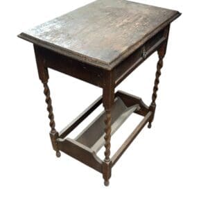 THB14106 side table worn oak veneer barley twist legs 2 knob handles to wide drawer x 1