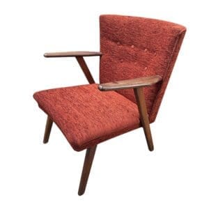 THB14777 arm chair teak rust / brown padded seat with matching buttoned back teak arms and legs x 1