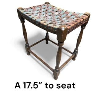 THB15052 stool oak turned legs – green grey / tan leather weave seat x 1