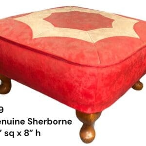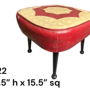 THB15038 Foot stool / pouffe red and cream vinyl queen Ann style legs x 1