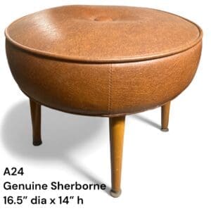 THB15035 Foot stool / pouffe genuine Sherborne buttoned tan vinyl x 1