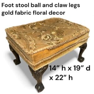 THB15033 Foot stool ball and claw feet dark wood gold fabric padded floral decor seat pad x 1