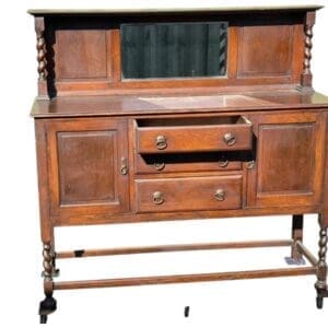 THB5540 Sideboard Oak with oval mirror to backing barley twist legs