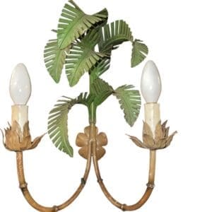 THB13985 wall light palm double bamboo branch with green foliage x 1