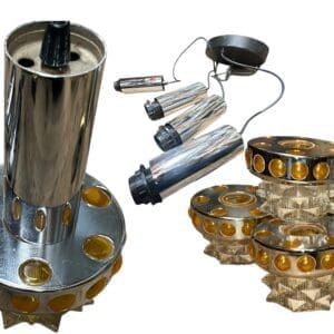 THB13971 chandelier / ceiling light 4 drop cylinders chrome with moulded glass shade with orange and chrome tops (European) x 1