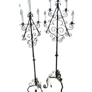 THB14165 church standard lamp electrified 3 and 4 branch barley twist stem on 3 ornate legs