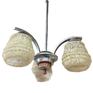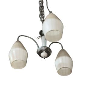 THB14852 chandelier three branch chrome with robes orange band two glass shades cream marbled (third one cracked damaged ) x 1