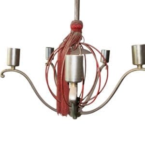 THB14854 chandelier chrome globe centre with red cord tassel five branch x 1