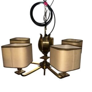 THB14855 chandelier brass with cream squared lamp shades 4 branch x 1