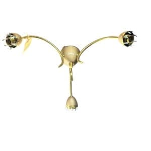 THB14844 ceiling light with lamp shades brass with amber ball decor to centre stem 3 branch x 1