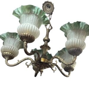 THB14851 chandelier brass 5 branch with white and green glass ceiling lights ornate x 1