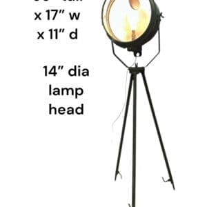 THB14024 Floodlight / searchlight Hendon Tilley glazed face converted from gas to electric on three legs with wooden bar handle to back of light on three metal legs Green