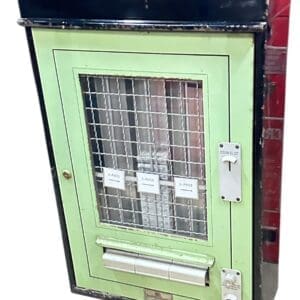 THB14592 cigarette ABA system vending machine green and black enamel wall mounted – caged reinforced glass front with coin slot and cigarette drawers x 1