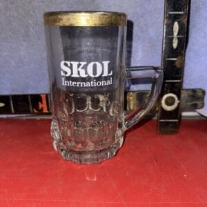 THB12619 Prosit half pint Dutch glass beer mug gilt band windmill decor
