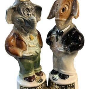 THB14726 Jim Beam novelty political Republican / Democrat (1960 commemorative American presidential election) ceramic whisky bottle x 2