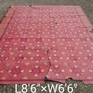 THBLINO2005 Lino carpet square red with yellow circles decor work to border cracked missing pieces x 1 (8ft 6 x 6 ft 6)