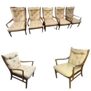THB1129 Parker Knoll arm chair / easy chair beech beige buttoned padded seat and back (ladder back) x 7