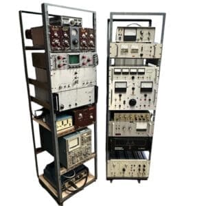 THB15358 laboratory shelving with testing equipment USA / uk scientific research / geological science each unit on four castors x 2
