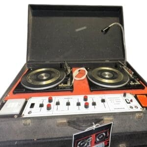 THB13976 BSR DJ record deck in carry case FAL System 50 with goose neck armoured lamp