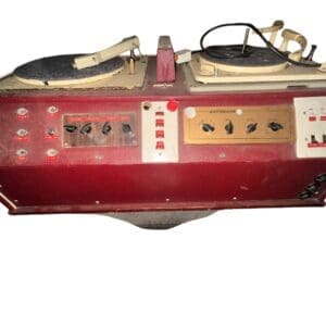 THB13907 Altobass Dj twin record deck maroon and cream with two cream record decks two chrome bar handles x 1
