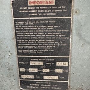 THB14632 Crypton commercial battery charger blue metal a/f some rust spots with lead and plug – two angled iron wall brackets to back x 1