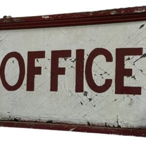 THB361 office sign wooden rectangular red and white painted