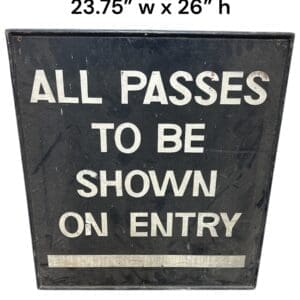THB9519 sign All passes to be shown on entry Black wood