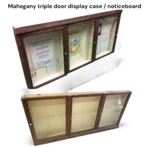 THB1208 noticeboard / display cabinet mahogany glazed doors chrome squared knob handles x 2