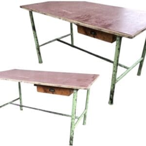 THB3479 Workbench / work table green tubular metal frame / legs hardboard and pine top x 2