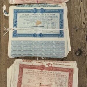 THB14788 bank note from Greece – (Greek Drachma )the National Bank of Greece ΕΘΝΙΚΗ ΤΡΑΠΕΖΑ ΤΗΣ ΕΛΛΑΔΟΣ blue / pink large paper sheets in bundles 1926 – Egyptian