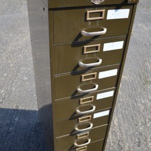 THB9814 Art Metal filing cabinet index multi drawer (8 index drawers) olive green with brass handle and name plate to each drawer x 5