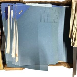 THB14784 folder file grey / blue card filled with paperwork binder file