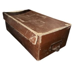 THB15086 archive file box brown composite rectangular with worn lid x 1