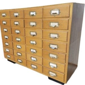 THB13666 index drawer filing cabinet golden oak veneer 28 drawers all with brass d cup handle and name plate x 1
