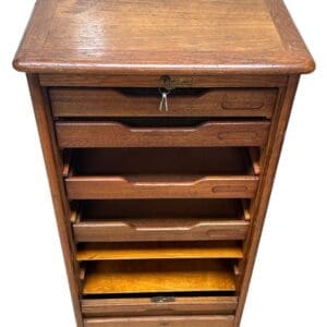 THB14118 Abbess filing cabinet tambour roller door with paperwork drawers and shelves inside oak x 1