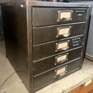 THB12389 filing drawer desktop type green metal 5 drawers brass hook handle and name plate x 1