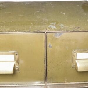 THB12396 Desktop index drawer olive green metal 2 index drawers brass d cup handle and name plate
