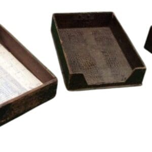 THB8794 Paper Tray (Paper tidy) assorted tiers green metal with brass name plates and hook handle brass bar connectors
