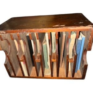 THB5965 paper tray desktop filing system oak with brass mane plate to each foolscap tray