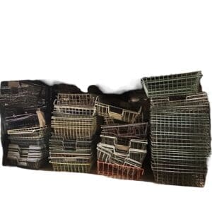THB14998 Paper tray metal assorted colours squared bar rectangular basket (some with stepped ends ) x 100