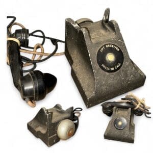 THB14795 field telephone in green Bakelite case with shoulder strap – rotary dial