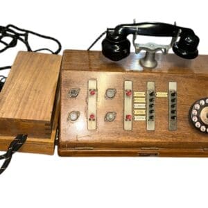 THB639 (Telephone – French Receptionist / office) Ste Des Telephones PICART-LEBAS French Receptionists Telephpne with extension switches rotary dial with metal mount for Bakelite handset fabric heavy duty cable and wall mounted box
